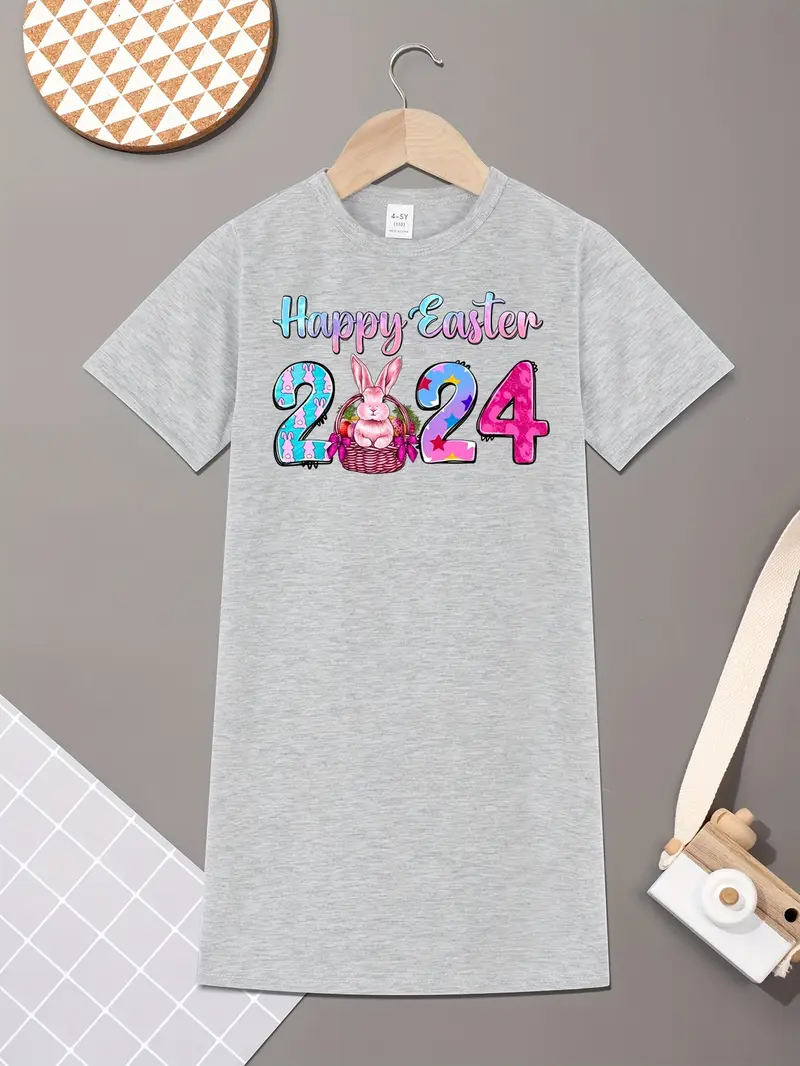 Source : www.everydaychicboutique.comHappy Easter 2024 Print Short Sleeve Dress Girls Casual Dresses
