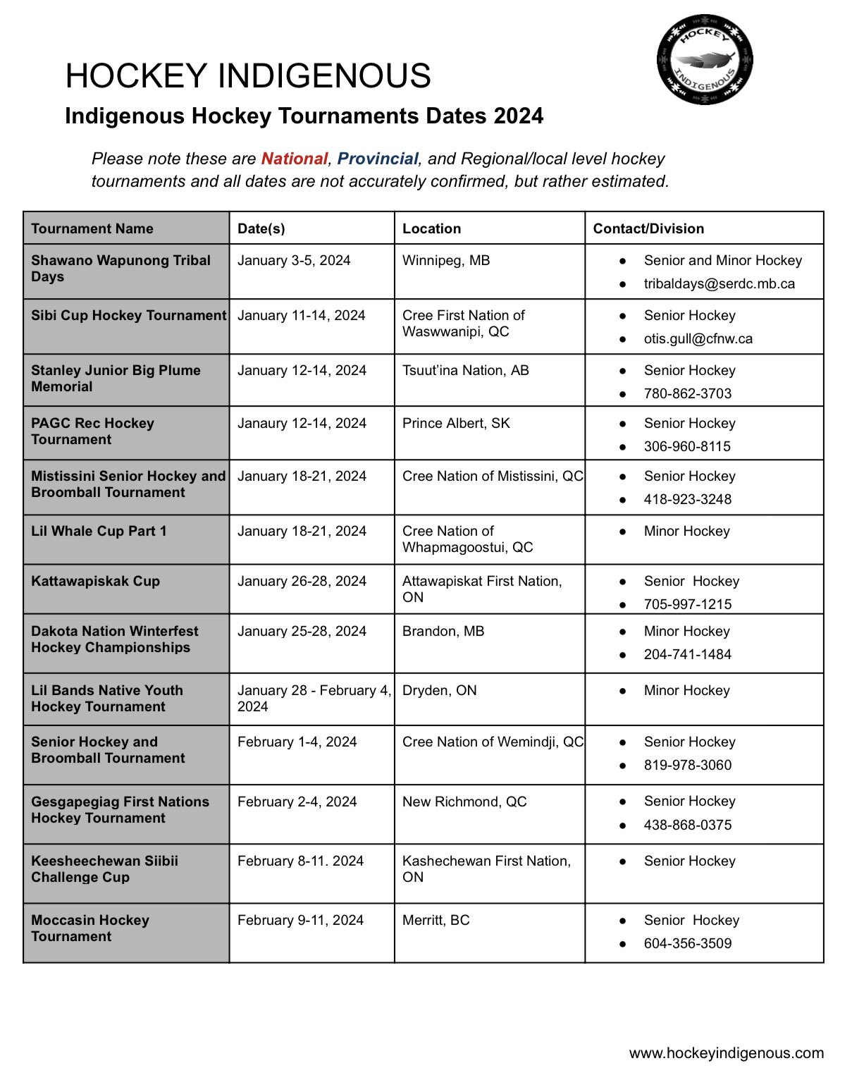 Source : www.facebook.comHockey Indigenous on X: “Check out the 2024 master list of
